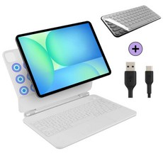 갤럭시탭S10 FE 및 S10 FE 플러스와 호환되는 블루투스 매직 키보드 케이스로, 흰색 디자인과 함께 휴대성과 편리한 타이핑 환경을 제공합니다.