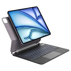 아이패드를 세로와 가로로 자유롭게 거치할 수 있는 매직키보드 케이스로, 트랙패드와 백라이트 한글 키보드를 지원하며 펜슬 수납 공간까지 갖춘 다기능형 제품이다.
