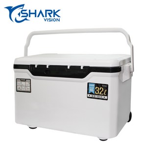 샤크비전 아이스박스는 32리터 용량으로 바다와 민물 낚시, 레저 활동에 적합하며, 보냉 기능과 이동용 손잡이, 캐리어 바퀴가 있어 편리하게 운반할 수 있다.