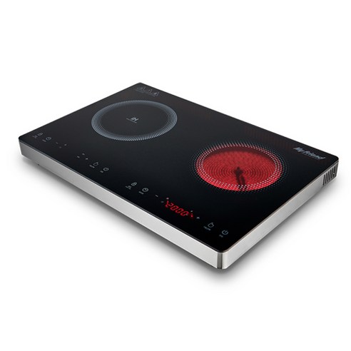 마이프랜드 하이브리드 전기레인지는 인덕션과 하이라이트를 동시에 사용할 수 있어 다양한 조리가 가능하며, 2구로 구성되어 소형 주방에서도 효율적인 요리가 가능하고, 안전장치와 터치 컨트롤로 편리하게 조리할 수 있는 전기레인지입니다.