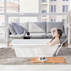 국내산 1인용 아크릴 이동식 욕조로, S라인 등받이 설계로 편안한 반신욕이 가능하며, 가벼운 7kg 무게로 이동과 설치가 간편한 제품입니다.