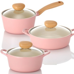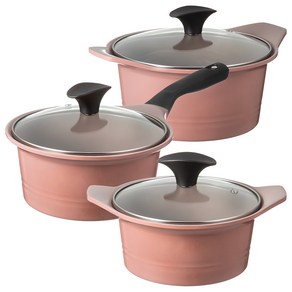 코멧 키친 세라믹 냄비 3종 세트, 로즈골드, 양수 냄비 16cm + 편수 냄비 18cm + 양수 냄비 20cm