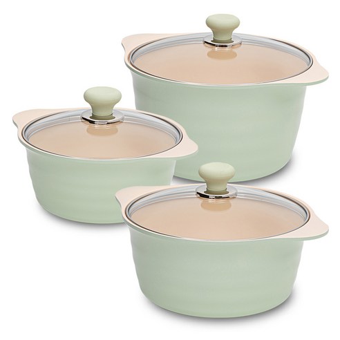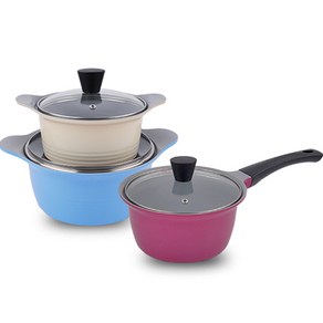 키친아트 프리미엄 쿡웨어 파스텔 컬렉션 냄비세트 3개, 혼합색상, 양수냄비 16cm + 편수냄비 18cm + 양수냄비 20cm, 1세트