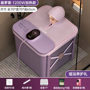 접이식욕조 온열욕조 1인 사우나 가정용 반신욕조, 9 등나무 보라색 1200W 가열감온 온모자 요욕양생례, 1개