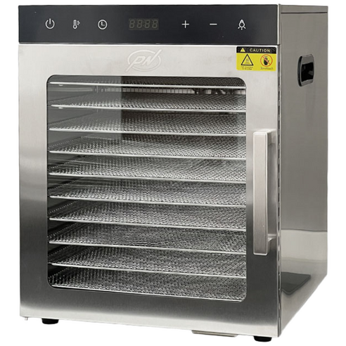 스테인리스 10단 구조로 대용량 건조가 가능해 한 번에 많은 식재료를 말릴 수 있었다. 온도 조절과 열순환이 안정적이라 과일과 채소가 고르게 마르는 편이었다.