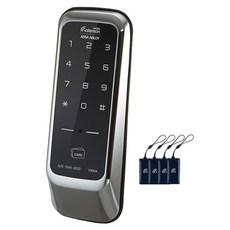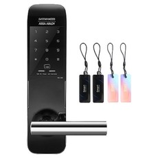 는 샷시문, 세이프도어, 패션문 등 슬림한 문에 설치되는 카드키 4개와 번호키 방식이 가능한 디지털 도어락으로 카드 또는 비밀번호 입력으로 출입을 제어하며 설치 기사 방문 설치가 포함된 제품입니다.