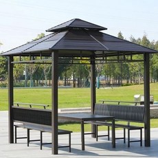 튼튼한 프레임과 조립식 구조로 제작되어 야외 바베큐장, 옥상, 정원 등 다양한 공간에 설치 가능하며, 벤치와 테이블이 포함되어 휴식과 모임을 동시에 즐길 수 있는 파고라 제품입니다.