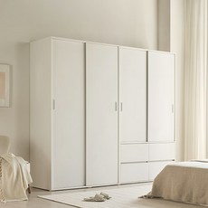 화이트 컬러와 2400mm 넓이로 다양한 의류와 소품을 정리할 수 있으며, 행거형과 서랍형 슬라이딩 구조로 효율적인 수납이 가능한 옷장 세트입니다.