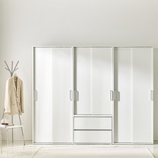화이트 컬러와 슬라이딩 도어로 깔끔한 공간 연출이 가능하며, 적당한 크기로 옷과 소품을 효율적으로 정리할 수 있습니다.