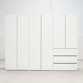 화이트 컬러와 키 큰 디자인으로 방 공간을 효율적으로 활용할 수 있으며, A타입과 B타입 구성으로 다양한 수납이 가능한 국내 제조 옷장 세트입니다.