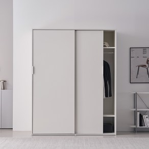 화이트 색상과 슬라이딩 도어 디자인으로 깔끔한 수납이 가능하며, 1600mm 크기로 작은 방에도 적합한 옷장입니다.