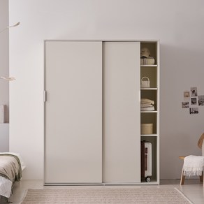 크림 아이보리 색상과 슬라이딩 도어로 부드러운 분위기를 연출하며, 1600mm 크기의 선반형 구조로 다양한 소품과 의류를 효율적으로 정리할 수 있습니다.