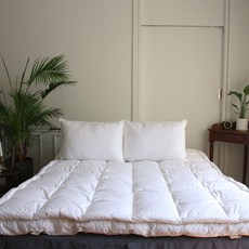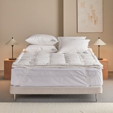 구스 충전재를 사용한 이중 구조 토퍼로 부드러운 쿠션감과 탄탄한 지지력을 동시에 제공하며, 매트리스 위에 올려 사용하면 수면 환경을 개선해주는 호텔식 침구 제품이다.