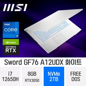 MSI GF시리즈 Sword GF76 A12UDX 화이트, Free DOS, 8GB, 2TB, 코어i7