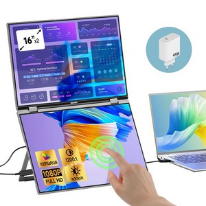 베쓰콘 16 인치 FHD 초슬림 터치식 듀얼 스크린 접이식 포터블 모니터, M1 PRO, 36cm는 이동성이 우수한 초슬림 디자인의 듀얼 스크린 포터블 모니터입니다.