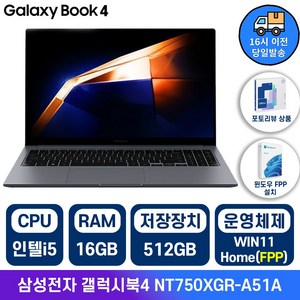 삼성 갤럭시북4 인텔 i5 15.6인치 사무용 학생용 업무용 인강용 가성비 노트북, 그라파이트, NT750XGR-A51A, 512GB, 16GB, WIN11 Home